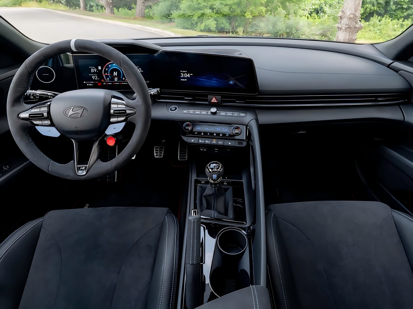 I dtéarmaí an taobh istigh, níl an leagan amach foriomlán den charr nua i bhfad difriúil ó leagan amach an Elantra, ach tá roth stiúrtha Alcantara "N" N ann le marcóir suímh 12 a chlog. Idir an dá linn, tá criosanna sábhála gorma sa tsraith tosaigh, tá gardaí leac miotail N ag na leaca dorais, agus tá mataí urláir feidhmíochta n sa charr freisin, chomh maith le líon mór trealamh taobh istigh Alcantara. Mar shampla, tá an luamhán coscáin páirceála láimhe, luamhán aistrithe giair, agus armrest bhosca armrest fillte in Alcantara. Mar fhocal scoir, tá lógó "leagan TCR" ar an doras ag láimhseáil soilse, atá lán de achomharc mothúchánach.